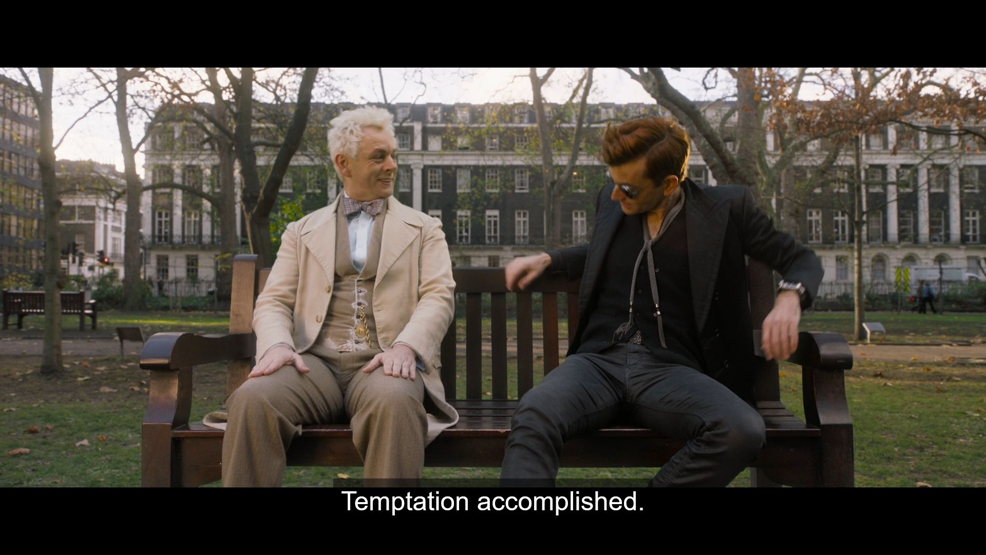 There is much more suggestive or ambiguous dialogue in the series, like Aziraphale telling Crowley, „Get thee behind me, foul fiend,“ nicknames like „angel,“ or the overuse of the words „temptation“ and „ineffable.“ For instance, when Aziraphale responds to Crowley’s lunch invitation at the end of series by saying „temptation accomplished.“ However, listing all those lines would exceed the scope of this article.