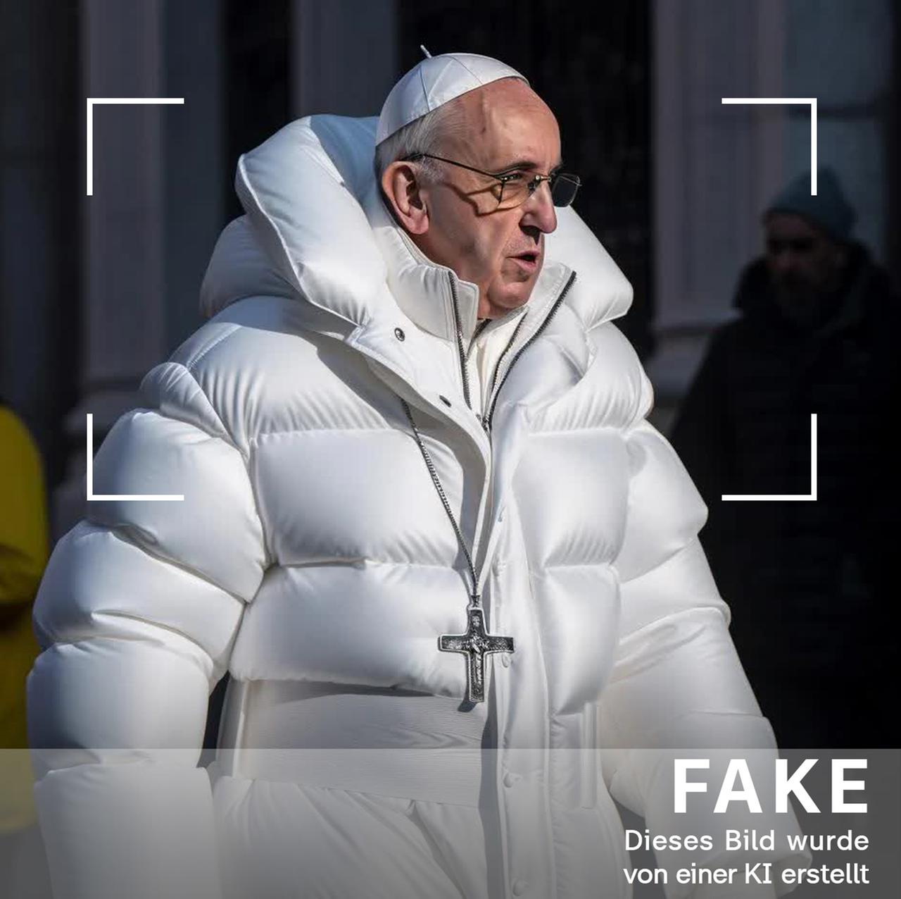 Abbildung 2: Papst in Daunenjacke, https://www.zdf.de/nachrichten/digitales/papst-daunenjacke-fake-ki-kuenstliche-intelligenz-100.html