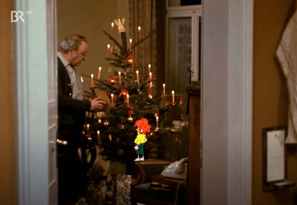 Mit wiederholtem Sehen und Ausprägung der Sehgewohnheiten kam für mich irgendwann aber auch eine Fokussierung auf die Form einher – konkret die Art der Animation: gewisse Szenen werden in verschiedenen Episoden immer wieder wiederholt aufgegriffen, seien es zum Beispiel die Transformationssequenzen von Elf Jordi, der Flug im Schlitten oder das klatschende Publikum in Episode 9 „Der Glücksbringer“. Denn es handelt sich hier um Limited Animation, insbesondere in den ersten Episoden, wo noch traditionell in 2D-Cel-Animation animiert wurde und dieser Prozess gerade für das Fernsehen kostensparend erfolgen musste. So wiederholen sich z.B. auch Hintergründe als Locations. All dies lässt bei mir bis heute eine über die Jahre ritualisierte Vertrautheit und ein Gefühl von Heimeligkeit aufkommen, die Weihnachten für mich ausmacht.